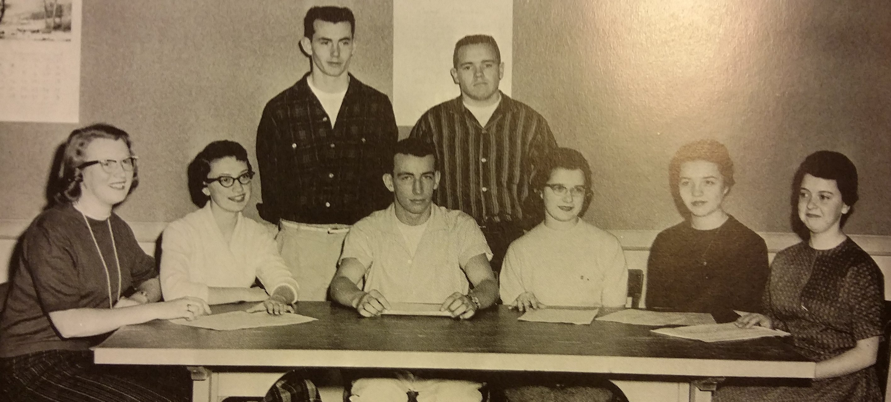 ![]() Class Officers: Jean Coffindaffer, Carole Doty, Lynn Curtis, Mike Gardner, Bill Haun, Barbara Bennett, Tom Jenkins (missing man), Roberta Spears, Marilyn Giles |